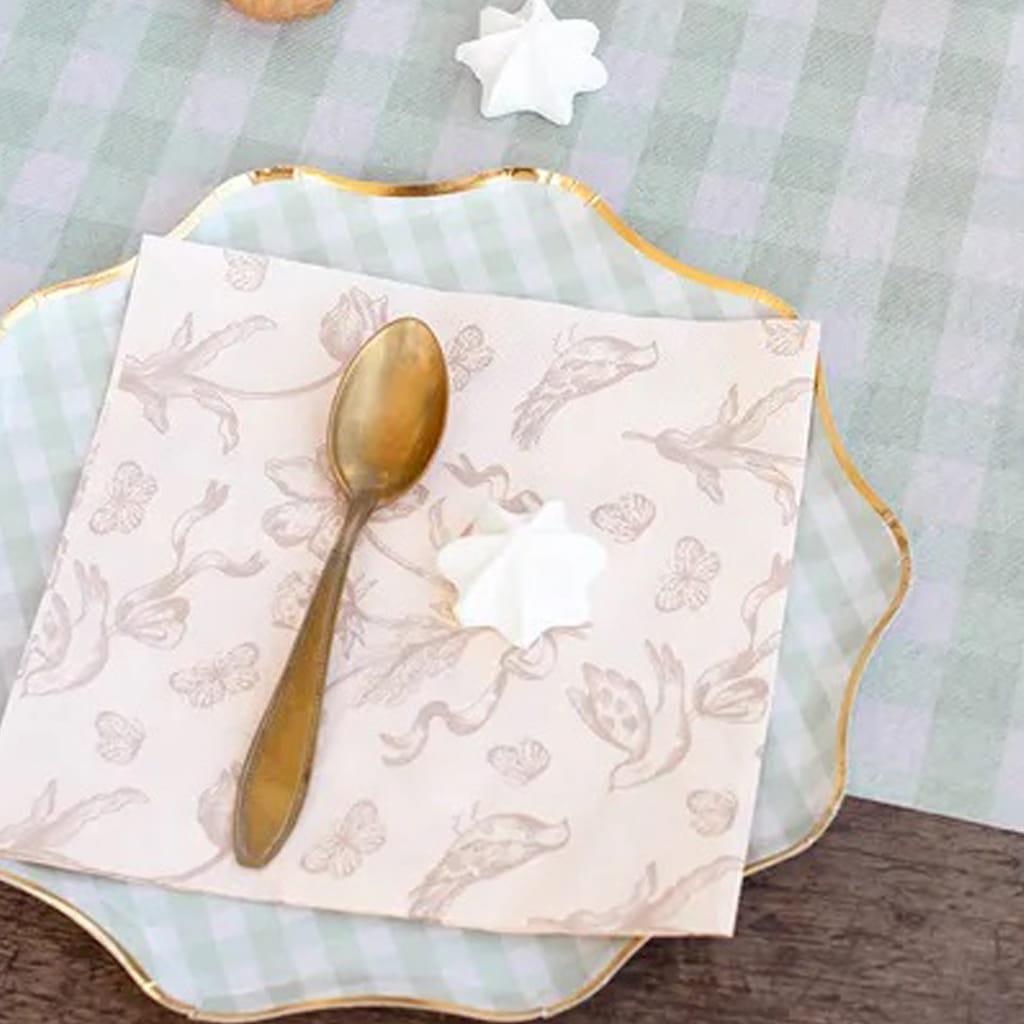 Pratos Xadrez Verde com Rebordo Dourado, 23 cm, 6 unid.