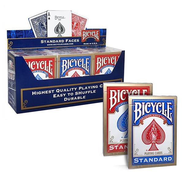 Nova caixa, o mesmo dorso. Os baralhos Bicycle são altamente recomendados para todos os efeitos de cartomagia pela sua soberba qualidade. Estas cartas são usadas por profissionais do mundo inteiro, das àreas do jogo, cartomagia, e manipulação. Disponivel nas cores vermelho e azul.