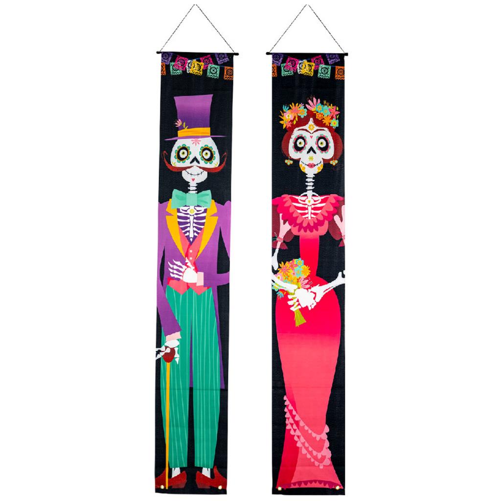 Decoração Porta Casal Caveiras Mexicanas, 1,80 mt x 30 cm