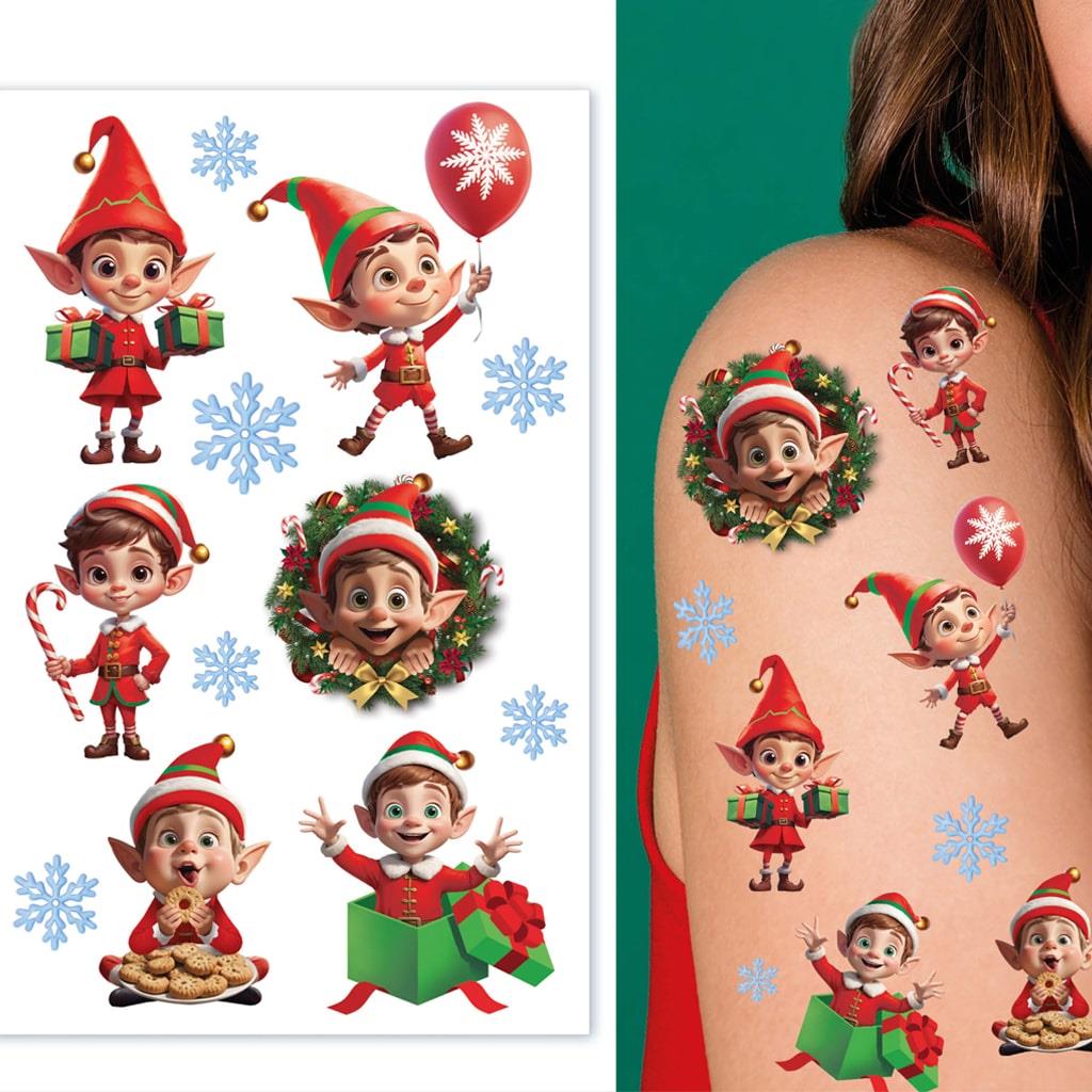 Tatuagens Adesivas Elfos Amorosos e Flocos de Neve