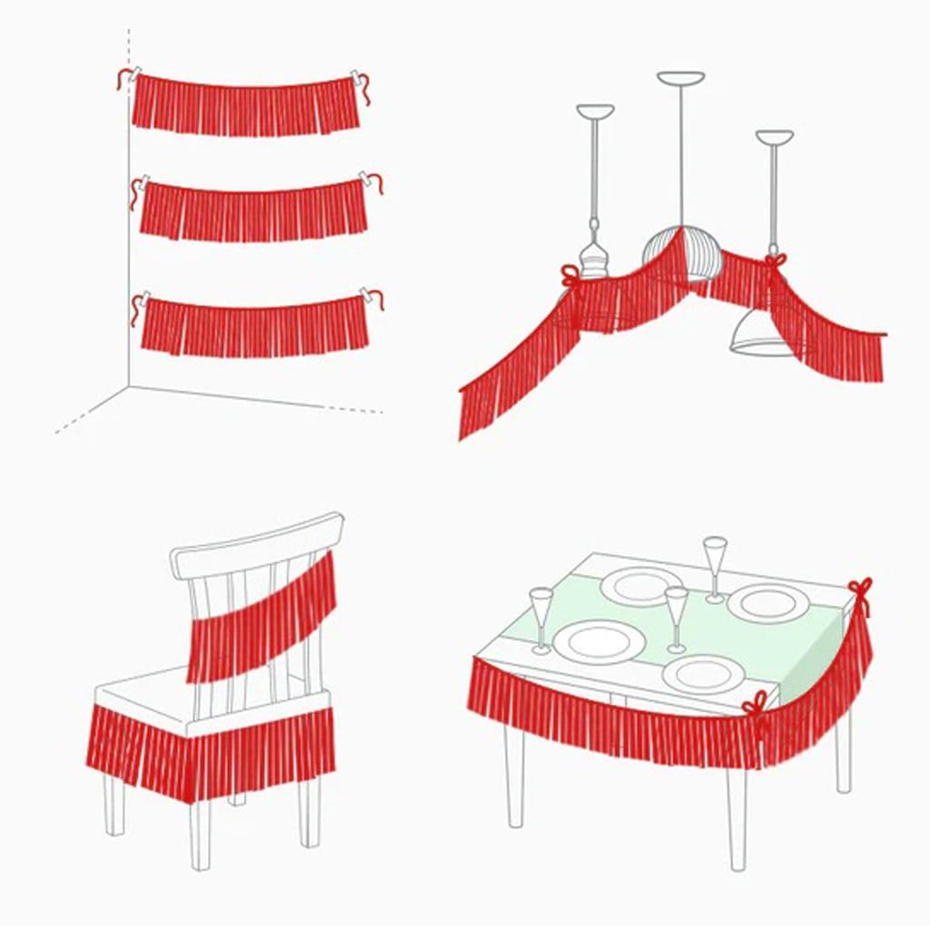 Grinalda Franjas Vermelhas Metalizadas, 1,50 mt