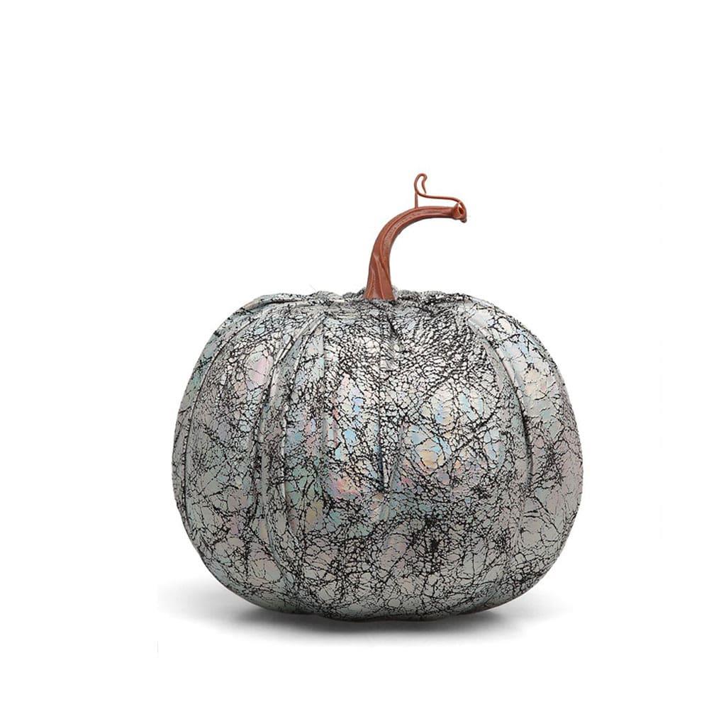 Abóbora Decorativa Prateada Iridescente com Detalhes Pretos, 16 cm