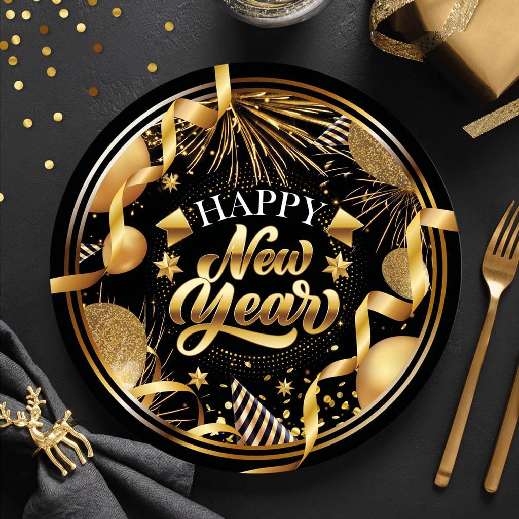 Pratos Happy New Year Glamour, 23 cm, 6 unid.