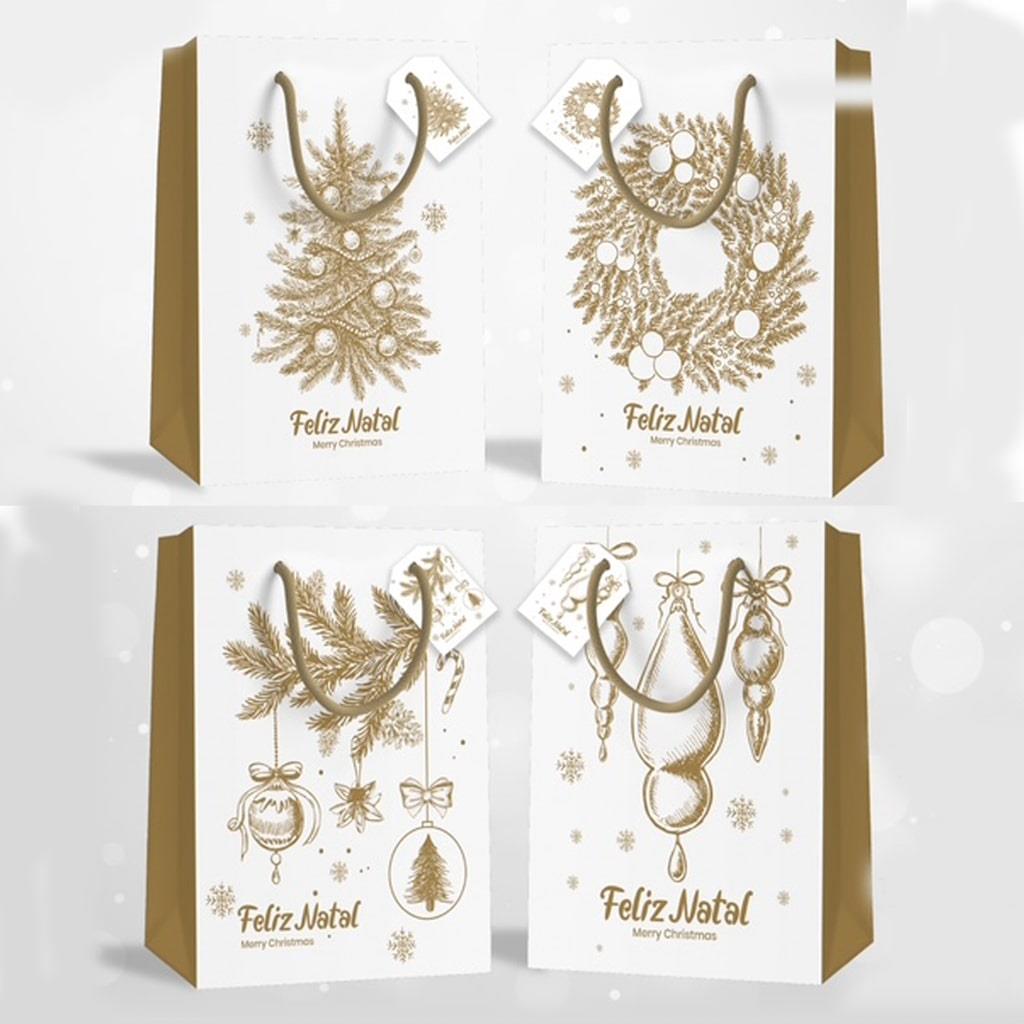 Saco de Papel Feliz Natal Dourado Médio
